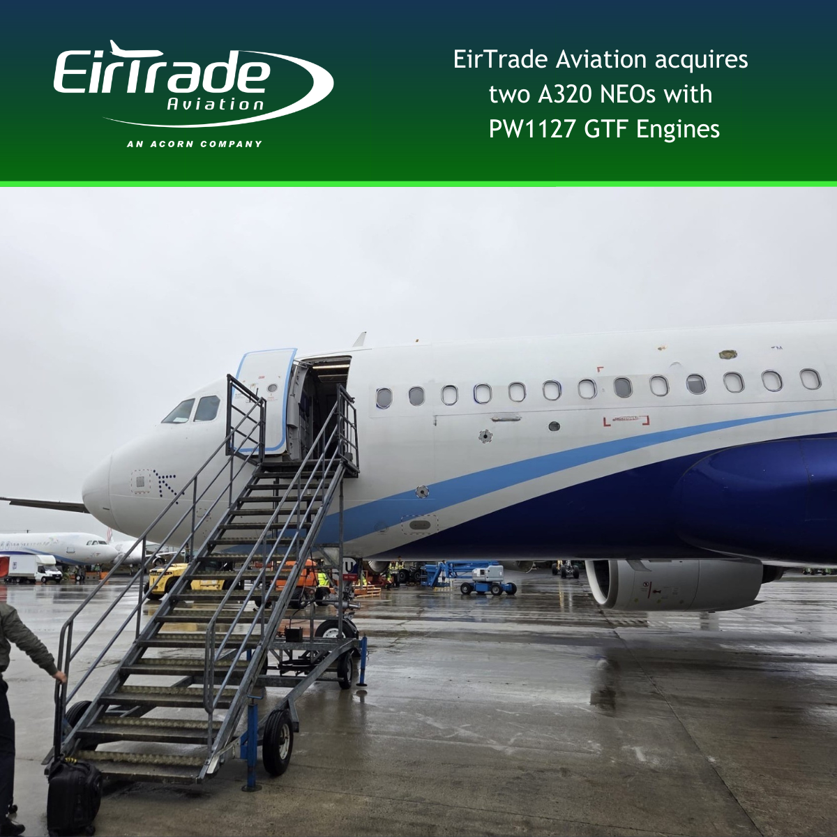 Dublin, 28th November 2025: EirTrade Aviation, the global aviation asset management and trading company headquartered in Dublin, has concluded the acquisition of two 6-year old A320 NEO aircraft powered by PW1127 GTF engines. The engines will be made available for sale by EirTrade to support the current global shortage of spare PW1100 engines, and the airframes will be disassembled at the Company’s facility in Knock (Ireland West Airport) to support the operations of EirTrade’s A320 NEO customer base.